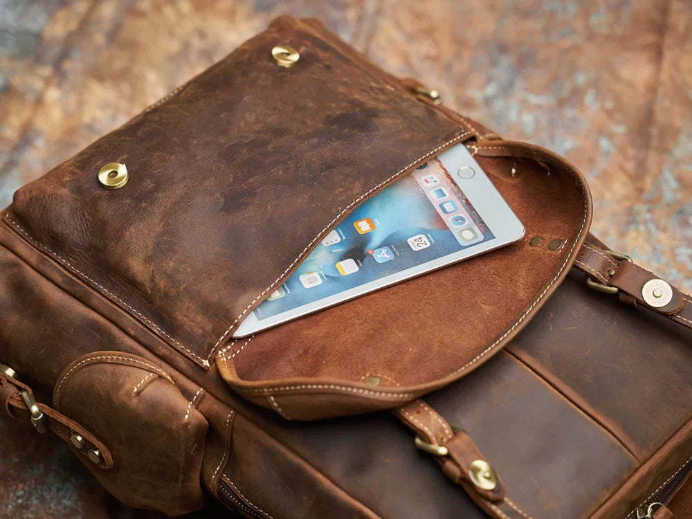Top-Layer Cowhide: Feel the difference! 'The Voyager' is meticulously crafted from premium, genuine top-layer cowhide leather. This isn't just any leather; it's the kind that boasts incredible durability and develops a rich, unique patina over time, truly telling your story.