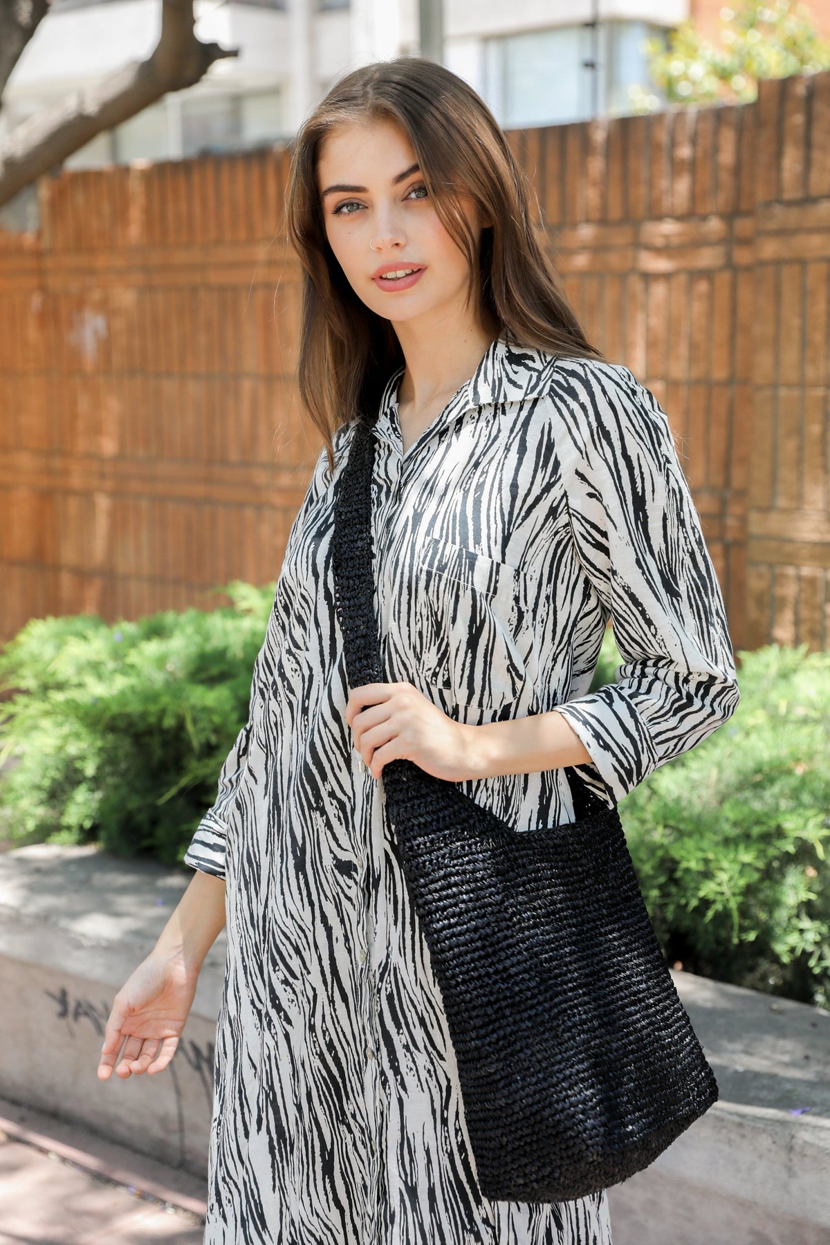 A sustainable and environmentally friendly accessory. Using raffia as the main material helps reduce the environmental impact, as it is biodegradable and renewable.
